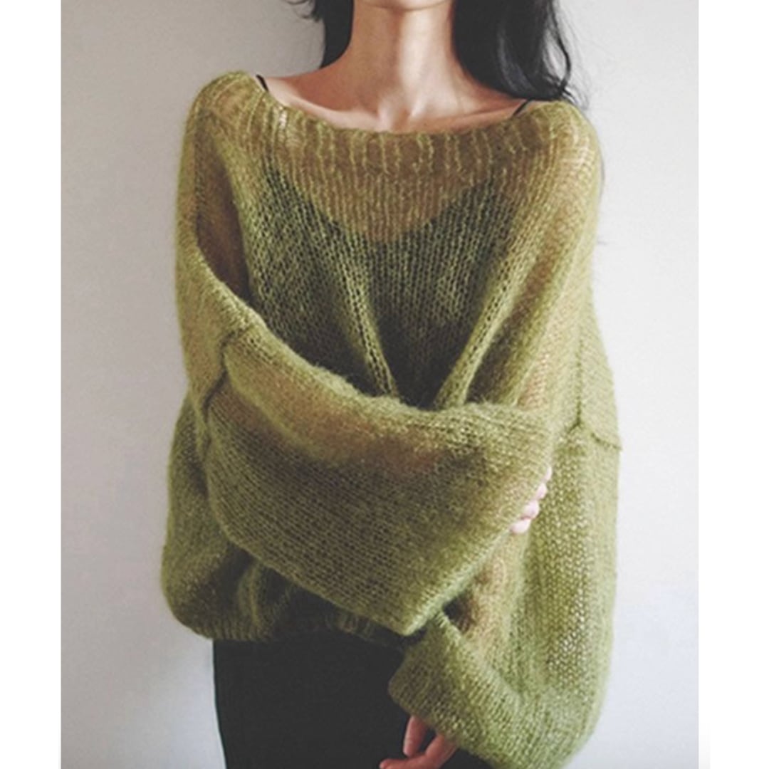 ゆったりとしたシルエットが、大人の抜け感を演出するニット。ヒップが隠れる丈感で、体型カバーも叶います。シンプルなデザインなので、カジュアルにもフェミニンにも合わせやすい万能アイテムです。