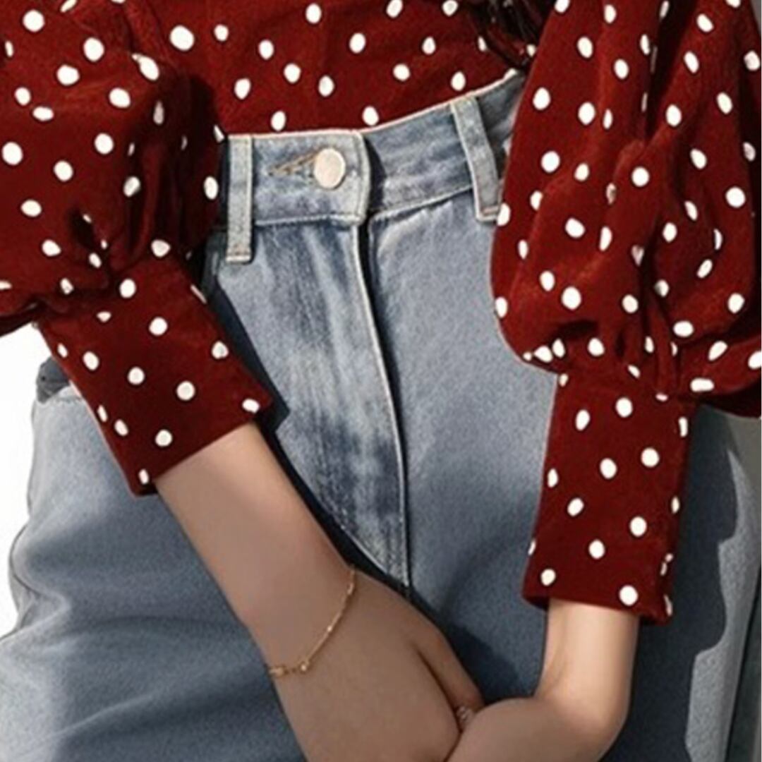 ドット柄Vネック・パフスリー袖ブラウス 1 /T-013