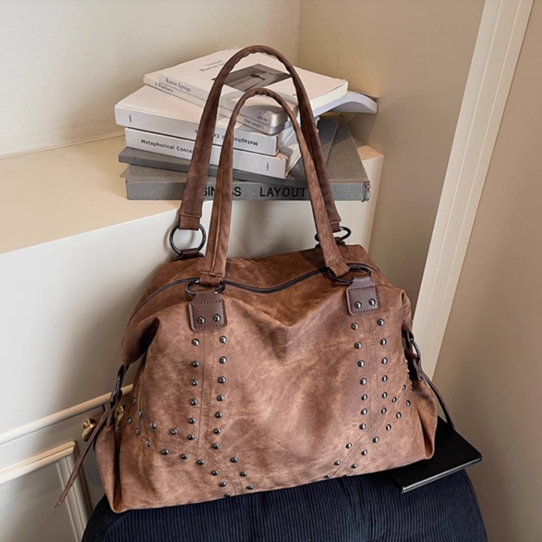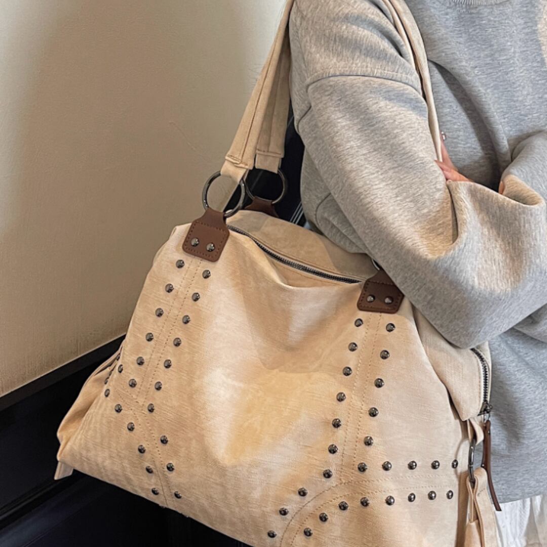 カジュアルながらも洗練された印象を与えるトートバッグ。スタッズデザインがエッジの効いたアクセントに。デイリーユースはもちろん、ちょっとしたお出かけにも最適です。