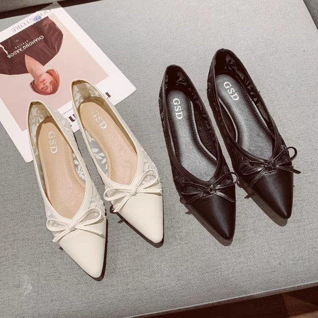 シアーチュー ル リボン フラットパンプス ポインテッドトゥ 00183